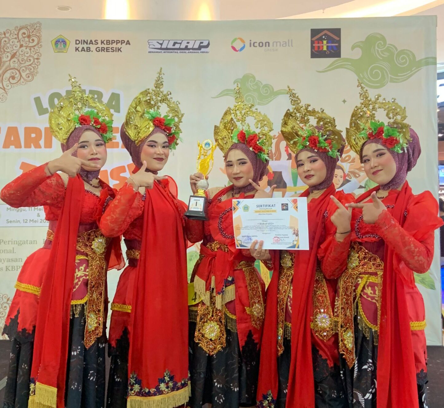 Balongpanggang – Kabar membanggakan datang dari SMP Muhammadiyah 2 Balongpanggang (Spemdaba). Tim tari sekolah yang beranggotakan lima siswi berprestasi berhasil meraih Juara Harapan 1 dalam lomba tari yang diselenggarakan di Icon Mall Gresik pada Minggu, 11 Mei 2025.